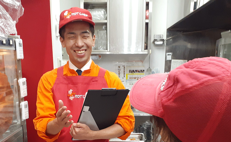 ホットシェフのスーパーバイザーは、店舗を訪問し様々な従業員(パートナー)と、話し合いや製造トレーニングを通じてお客様の期待に応える商品を提供していく業務です。