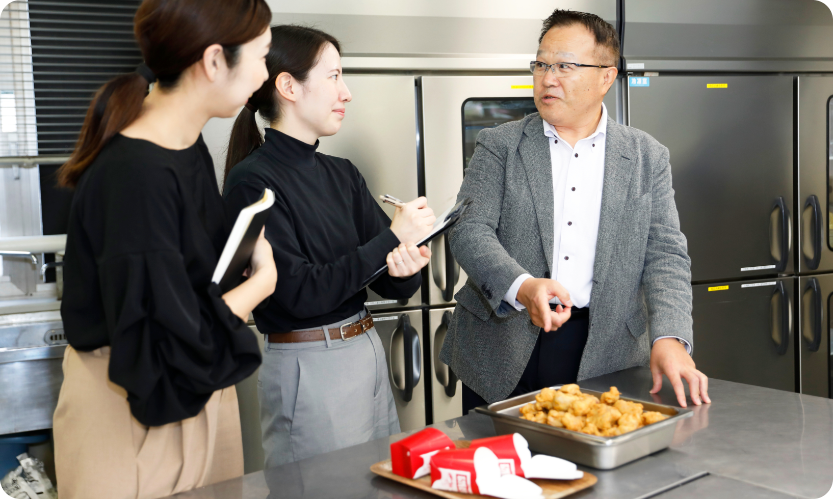 年々、ホットシェフの売上は拡大している。その成長を維持できるかどうか、大切なのは正確なオペレーションでおいしい商品を作り続けることだ。定番のカツ丼やフライドチキンは新人からベテランの従業員まで、同じおいしさを提供できるようにマニュアルを準備している。しかし、マニュアルだけでは味にブレが発生することもある。定期的なオペレーションのチェックが不可欠だ。「商品が想定外の販売数量になるとうれしい反面、楽しみにして来てくださったお客様を裏切らないように考えなければなりません。商品がよく売れると製造している従業員もうれしい。働いていて楽しいという気持ちを醸成できるよう、売れ行きをフィードバックするのもSVの大事な仕事です」と話し、人と人とのつながりの大切さを本部員に意識してもらいたいと思いを込めるT。お客様に喜んでもらうことが、働く者の喜びを生む。ホットシェフはそんな好循環を目指している。