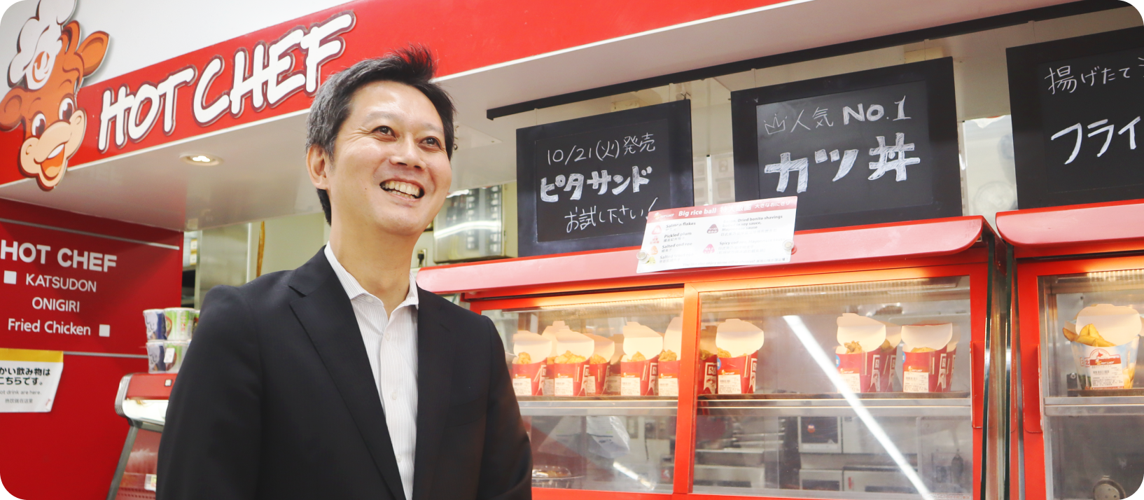 2000年入社。店舗スーパーバイザー(SV)経験後、入社3年目よりホットシェフ部門メインでキャリアアップ。途中、店舗SV経験もあり。2019年よりホットシェフ部門の本部長。